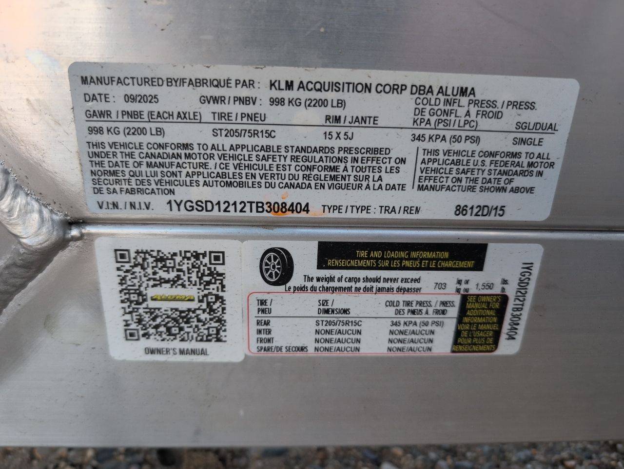 2026 Aluma 101.25" x 12' Toy Hauler Trailer